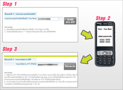 1. คลิกที่ปุ่ม สมัครสมาชิกเพื่อสมัคร/จัดการข้อมูล GG Mobile Club